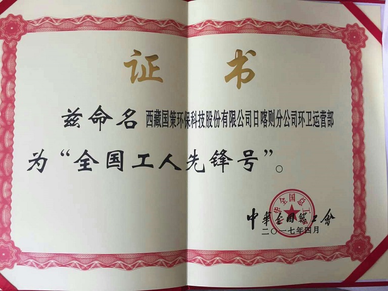 日前,全国总工会召开“五一”开云kaiyun网页版官网发布会, 通报了一批“2017年全国工人先锋号”。西藏开云kaiyun网页版官网科技股份有限公司日喀则分公司运营部全体成员在日常工作中劳心劳力、风雨无阻、践行无私奉献的城市“美容师”精神,被授予“2017年全国工人先锋号”,是我司首获此殊荣。