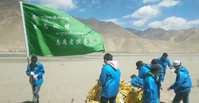 山南市团委组织青年志愿者前往雅江河畔清理河床垃圾