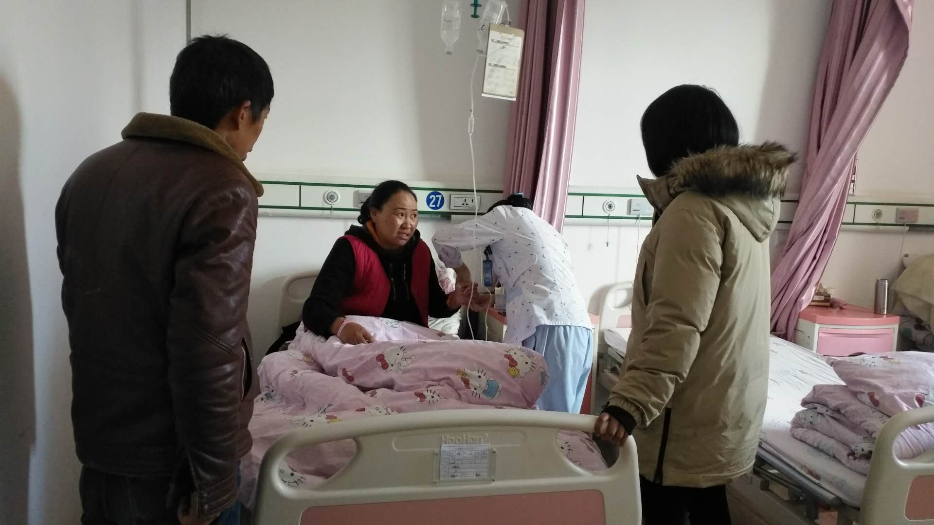 公厕组员工曲尼在上班期间摔倒住院,近日,我司代表前去医院看望,关怀其身体状况,叮嘱员工保重身体,并发放慰问金,祝福员工新年快乐,早日康复。