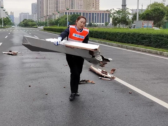 每年夏天台风天气,暴雨过后,大量的泥沙、淤泥堆积在道路上,影响行人和车辆的通行。每当这种时候禤艳辉总是身先士卒,带领分公司一线工人排沙清道,第一时间将路面沙、泥、垃圾全部清扫干净。