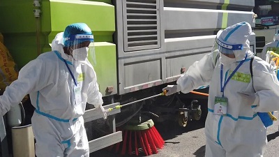 早上七点,大多数人还处在睡梦中时,国策人们早已行动起来。他们穿着防护服,早早地奋战在我市的各条街道上,对市内的道路、垃圾箱房等环卫设施等进行全面的消毒清洁,同时将各小区内的生活垃圾消毒、消杀,确保生活垃圾消杀不遗漏,进一步排除疫情传播风险。